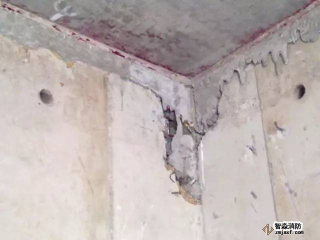 缺棱、掉角是指梁、柱、板、墻以及洞口的直角邊上的混凝土局部殘損掉落。產生的主要原因是混凝土澆筑前模板未充分潤濕,棱角處混凝土中水分被模板吸去,水化不充分使強度降低,以及拆模時棱角損環或拆模過早,拆模后保護不好也會造成棱角損環。