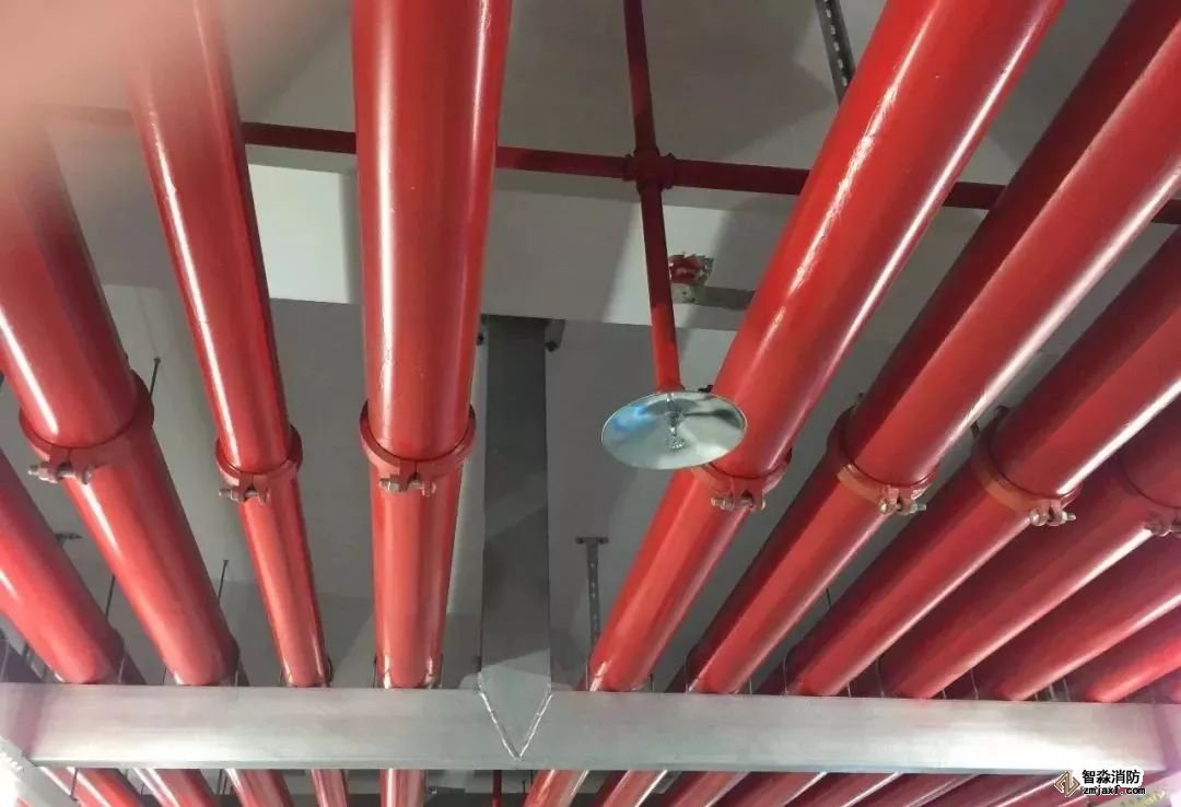 消防噴淋管道間距一致,標識清楚、成排成線。