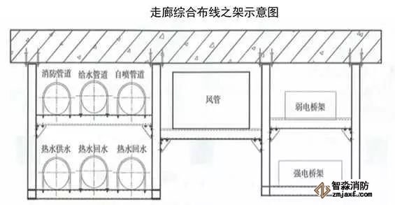 5、橋架和水管多層水平布置時,橋架應位于水管上方;高中壓在上,低壓在下,經常檢修的在下;與吊頂表面末端設施連接的管線宜貼近吊頂,減少交叉;