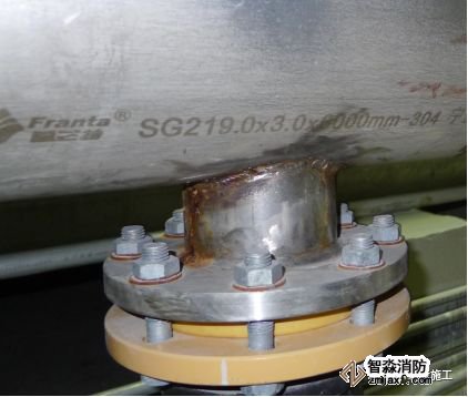 1.4 質量通病:鍍鋅鋼管現場焊接法蘭。
