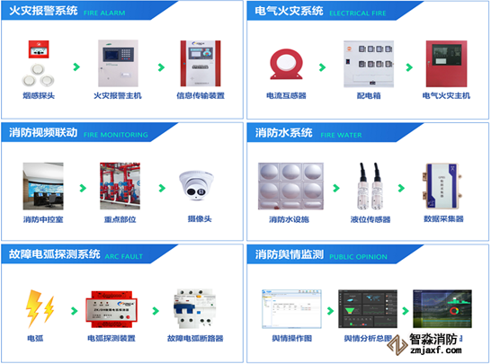 電氣火災探測系統涵蓋了電氣火災預警—消防電源監測—故障電弧監測—電弧斷路四個功能模塊,系統對線纜溫度、電流、剩余電流進行實時在線監測和統計分析,可實現對配電柜、二級箱柜、末端的配電箱等各關鍵節點的剩余電流、電流和溫度的實時監測,形成了電氣火災內部閉環式管理。