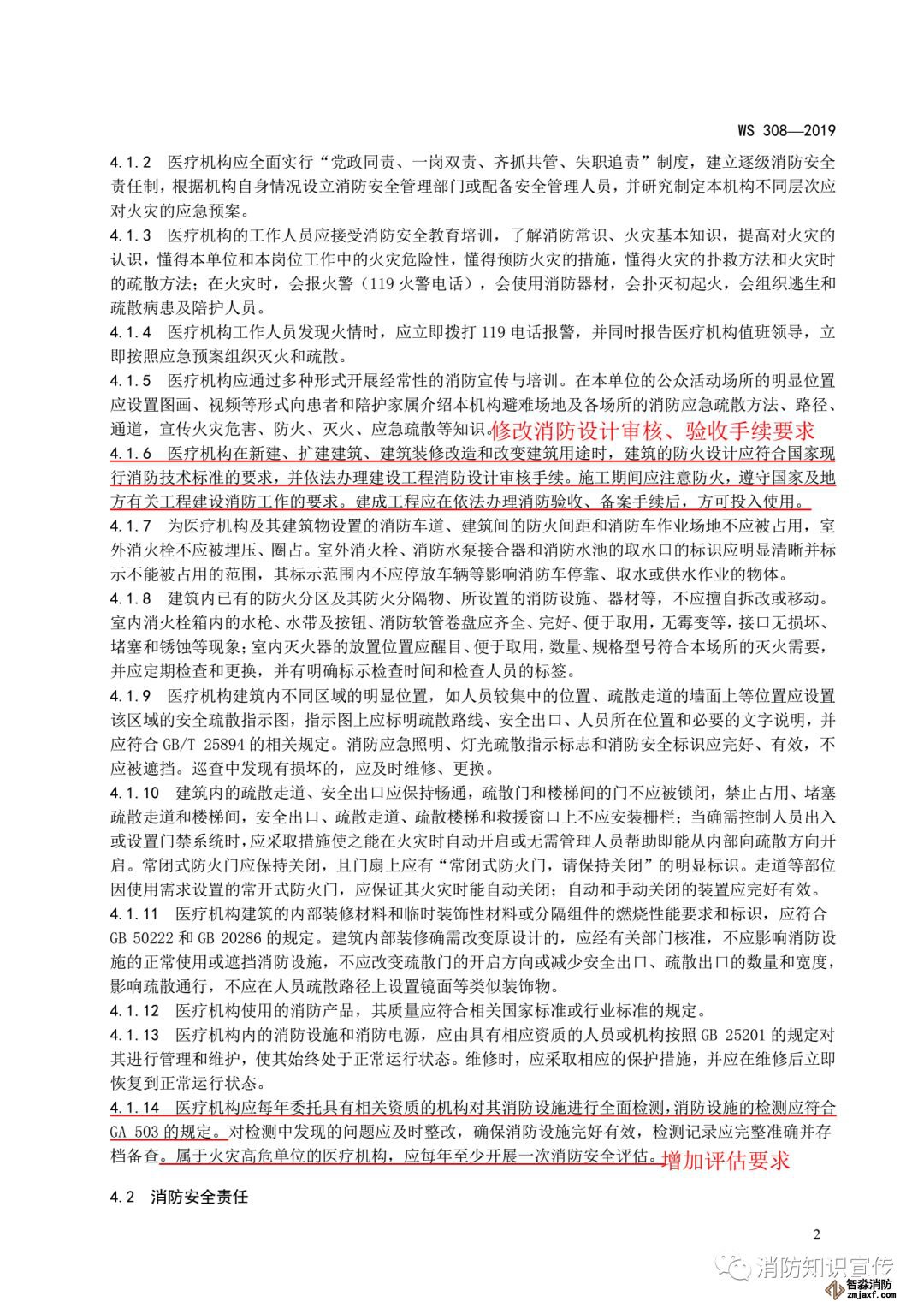 ——增加了屬于高危單位的醫療機構開展消防安全評估的要求(見4.1.14);