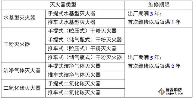 3.2 滅火器的維修期限應符合5.4.3表的規定。
