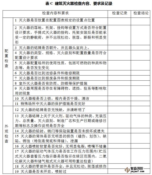 2.1 滅火器的配置、外觀等應按附錄C的要求每月進行一次檢查。