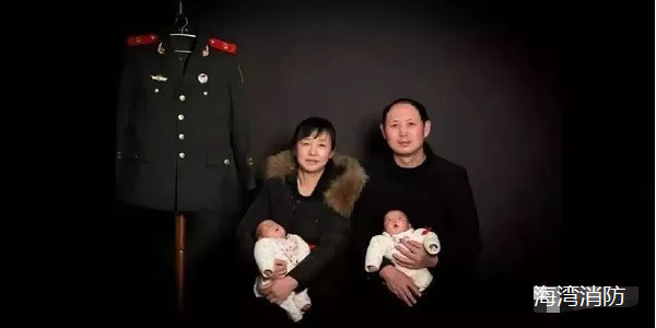 這是天津?yàn)I海爆炸事故救援中犧牲消防員龐題的父母和他們新出生的龍鳳胎思思和念念,希望他們不要忘記大哥。