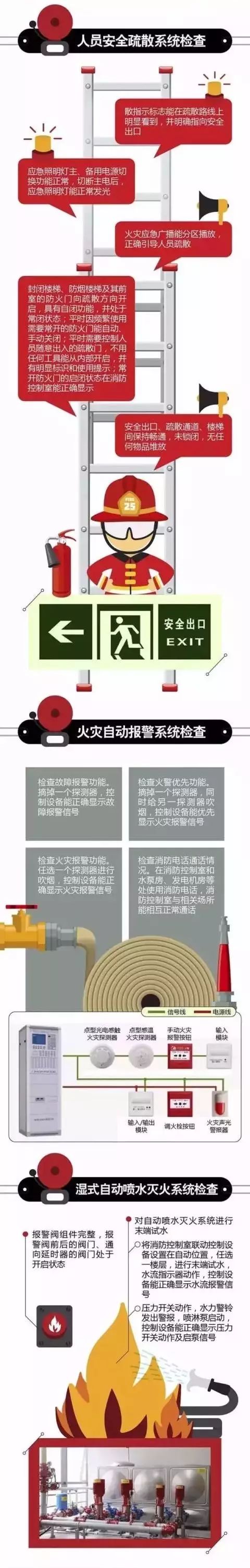 對人員密集場所還應當抽查室內裝修材料是否符合消防技術標準、外墻門窗上是否設置影響逃生和滅火救援的障礙物。