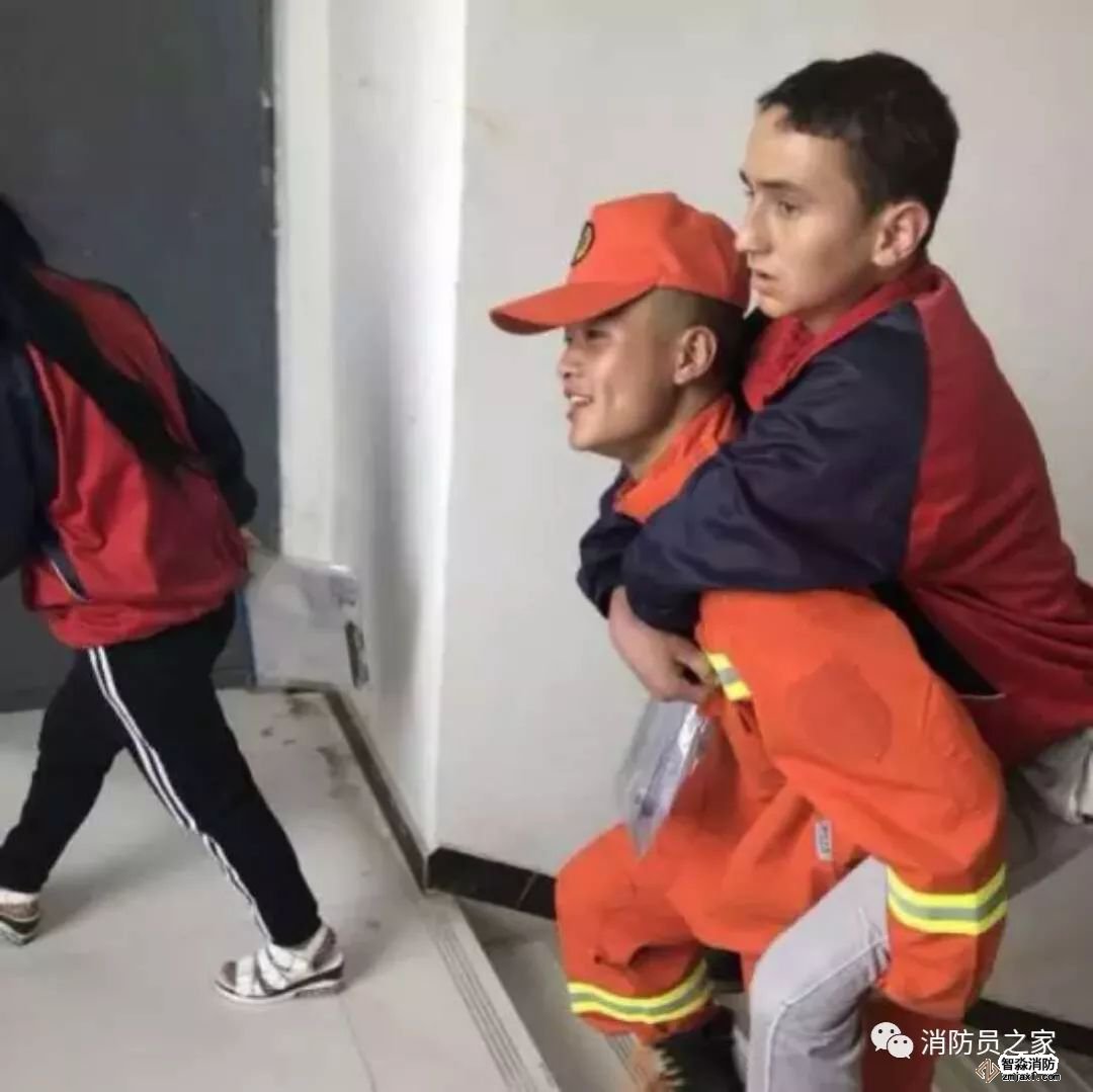 6月8日高考的第二天,喀什地區公安消防支隊葉城中隊官兵在葉城縣第四中學高考點執勤時,發現行動不便的考生,將考生背進考場。