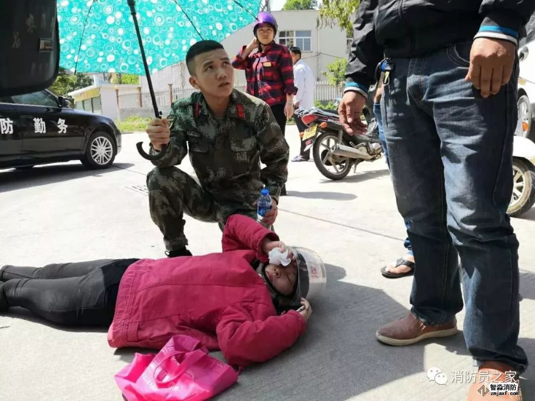 4月8日10時40分許,福建省漳州市長泰縣順祥路口一面包車與一電動車發生碰撞,導致一騎電動車的女子摔倒在地。這一幕,恰好被公差勤務途中的長泰消防大隊消防員陳凱和賈專益看到,二人立即上前了解情況。消防員迅速將電動車從該女子身上挪開,推到旁邊空地。