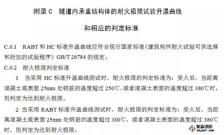 (1)一、二類隧道和通行機動車的三類隧道,其承重結構體耐火極限的測定應符合本規范附錄C的規定;