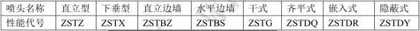 3)噴頭規格型號的標記由類型特征代號、性能代號、公稱口徑和公稱動作溫度等部分組成。