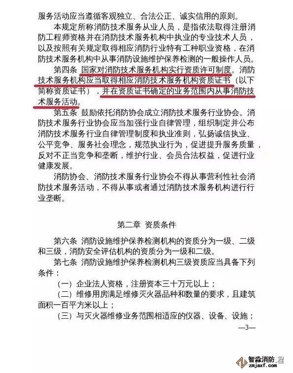 “ 取消消防設(shè)施維護(hù)保養(yǎng)檢測(cè)、消防安全評(píng)估機(jī)構(gòu)資質(zhì)許可制度,企業(yè)辦理營(yíng)業(yè)執(zhí)照后即可開展經(jīng)營(yíng)活動(dòng)。”這是征求意見稿非常重要的一條。