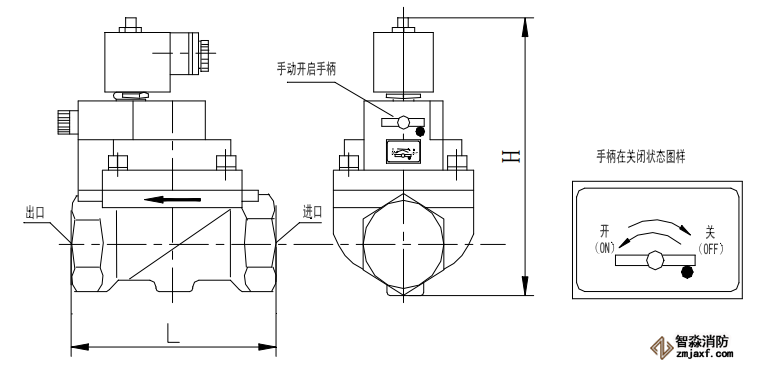 補水電磁閥平時處于常閉狀態,具有電啟動和機械手動兩種開啟方式。