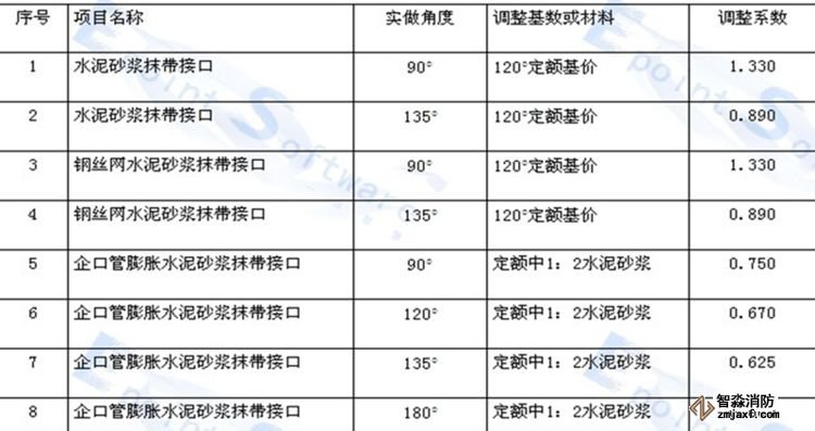 企口管的膨脹水泥砂漿接口和石棉水泥接口適于360度,其他接口均是按管座120度和180度列項的。如管座角度不同,按相應材質的接口做法,以管道接口調整表進行調整(見下表):